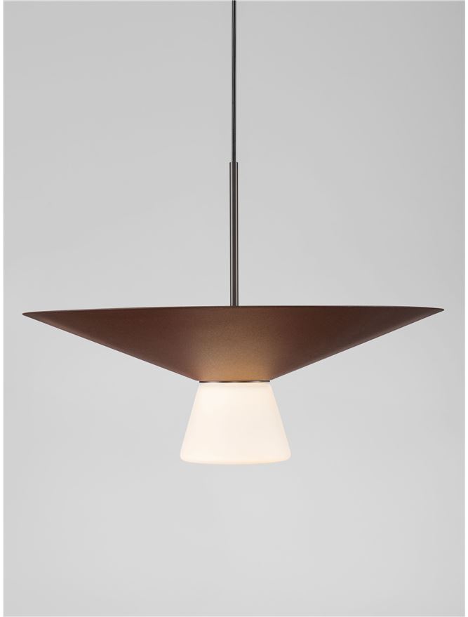 - Rust Brown Metal & Opal Glass Brushed Gray Metal Base