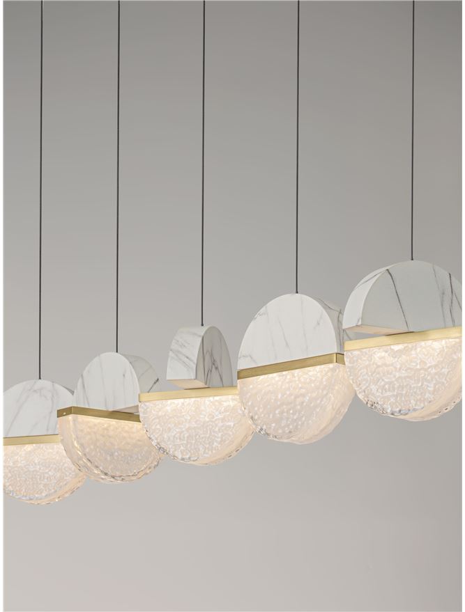 - White Marble-Look Aluminium, Brass Gold Metal & Cloud Glass Matt Black Metal Base