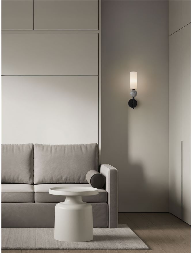 - Gray Stone Travertine & Opal Glass Matt Black Metal Base