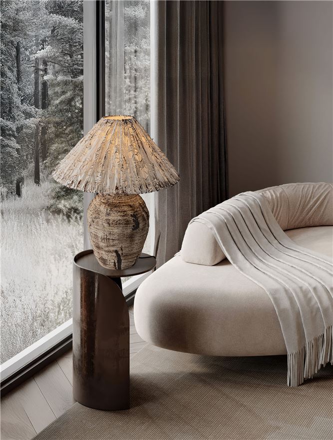 - Natural Handmade Art-Made Line Shade & Beige Ceramic Art-Made Base